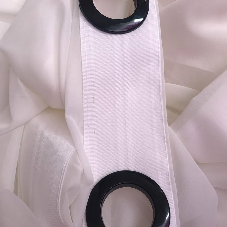 این پرده ها با نوارهای مخصوص پانچ و حلقه های مشکی، کرم و طوسی موجود هستند. جنس پرده شامل حریر ساده، حریر بافت دار، کتان و مخمل می باشد.