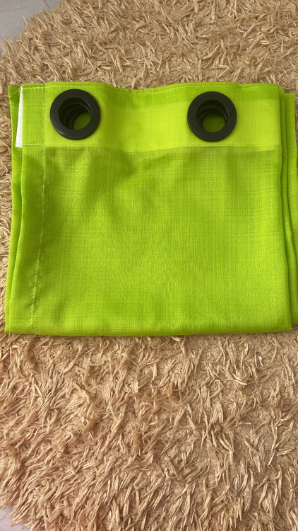 یک پنل پرده آماده دوخته شده پانچ شده با نوار و حلقه اعلا در عرض۱.۴۰و قد۲.۸۰می باشد که در حالت چین دار ۵۰سانت از فضای پنجره را پوشش میدهد.این نوع از حریر به علت بافت هایی که دارد نیاز به آستر ندارد و تا۸۰درصد دید را پوشش میدهد.