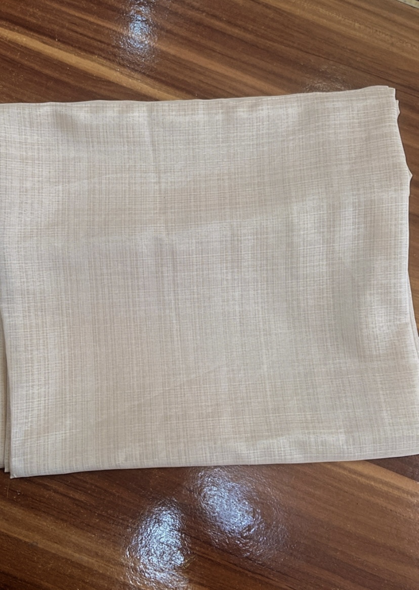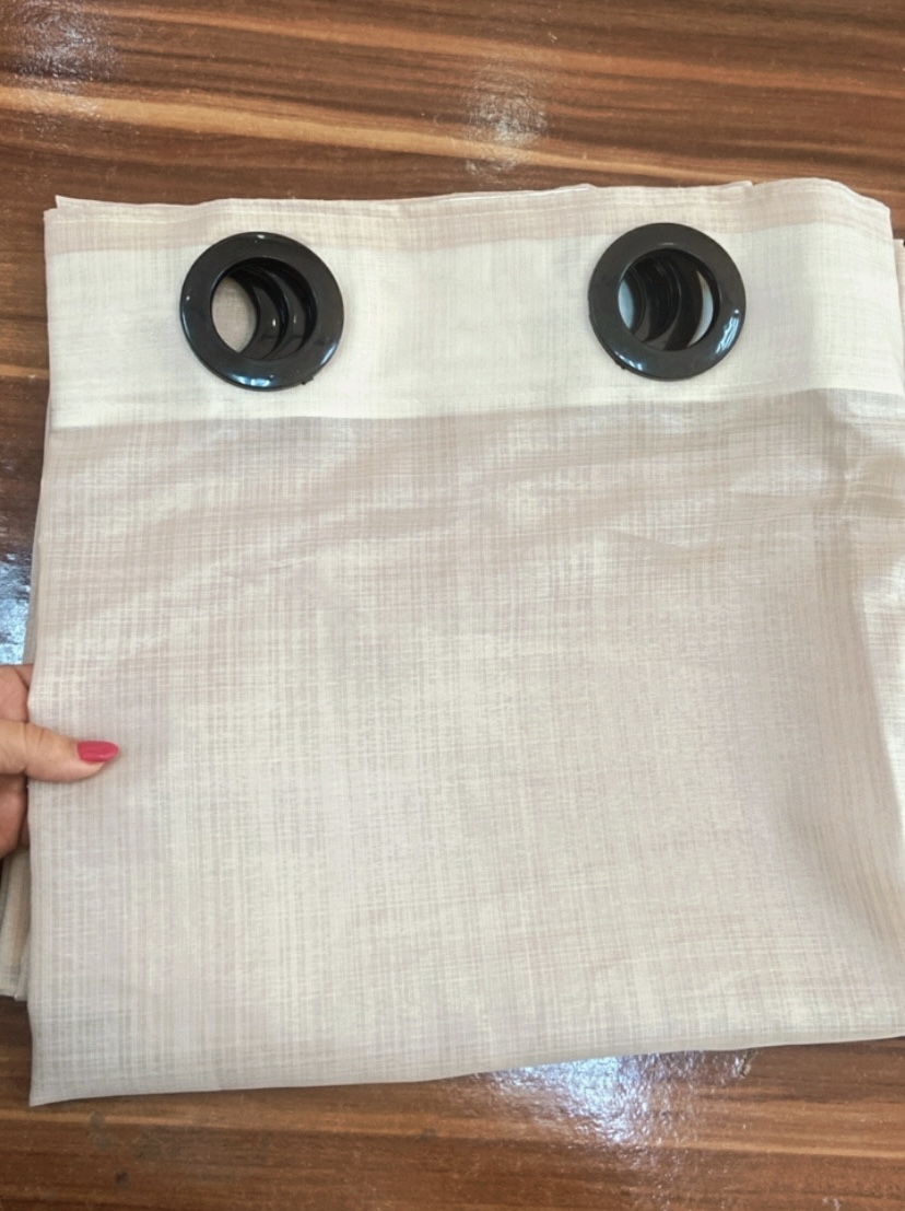 یک پنل پرده آماده دوخته شده پانچ شده با نوار و حلقه اعلا در عرض۱.۴۰و قد۲.۸۰هست که ۵۰سانت از فضای پنجره را پوشش میدهد.این جنس از حریر به علت بافتی که دارد نیاز به آستر ندارد و در حالت چین دار۸۰درصد پوشش دید دارد.